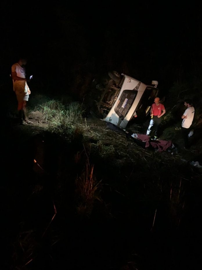 A perícia foi realizada no local do acidente e o micro-ônibus foi removido do local.