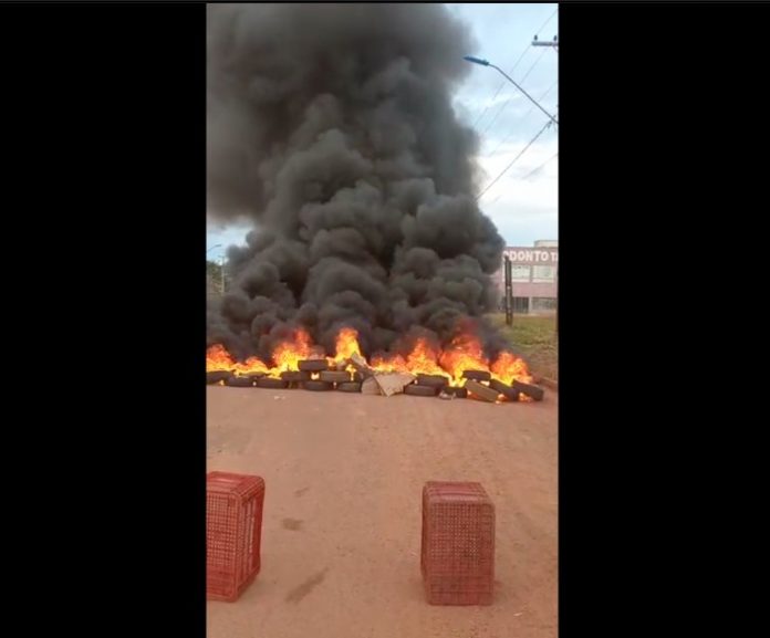 Protesto foi feito na avenida LO-05, a principal do setor Taquari. Comunidade reclama das péssimas condições da via. Moradores do Taquari queimam pneus em protesto aos buracos nas ruas do setor