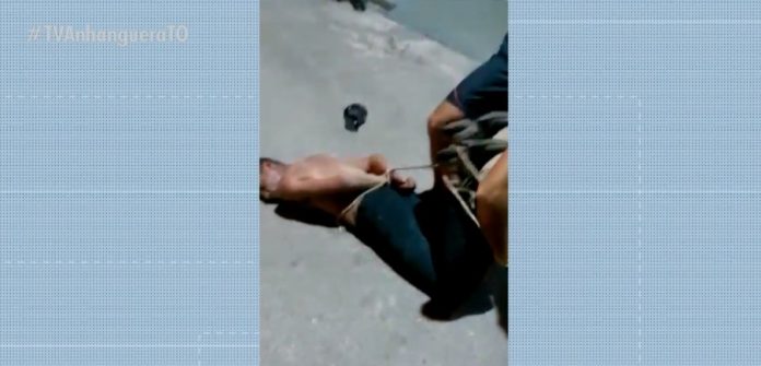 Caso foi na madrugada desta segunda-feira (7) em Dueré, no sul do estado. Moradores disseram ter levado quase três horas para conseguiu contato com a polícia. Suspeito de furto é amarrado por moradores em Dueré