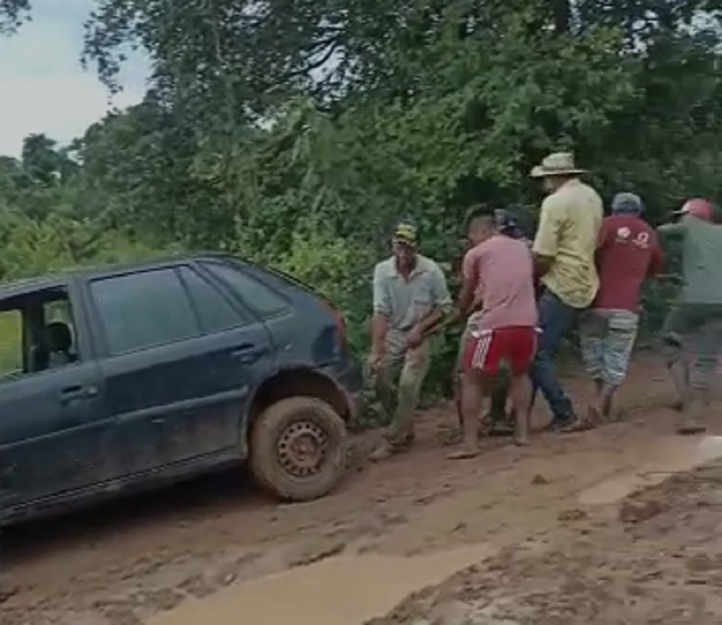 Imagens feitas por moradores mostram vários trechos em péssimo estado e carros atolados. A situação é tão precária que até caminhonetes traçadas estão ficando paradas pelo caminho.