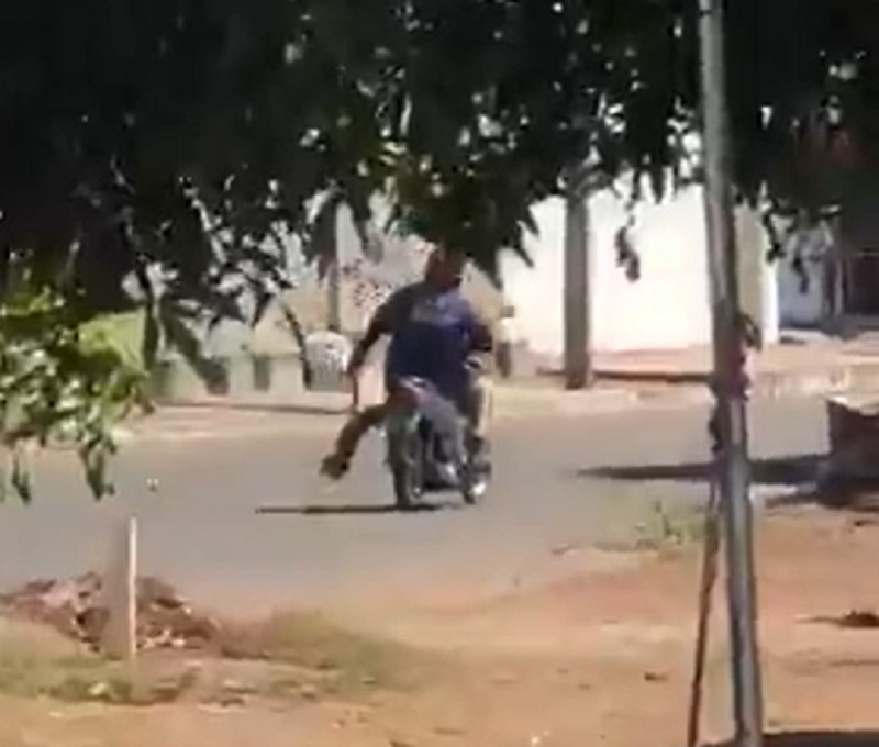 Um vídeo gravado no setor Sol Nascente, em Gurupi, mostra um homem conduzindo uma moto enquanto leva um cachorro pendurado por uma das patas. Nas imagens é possível ver que o animal fica a poucos centímetros do chão.