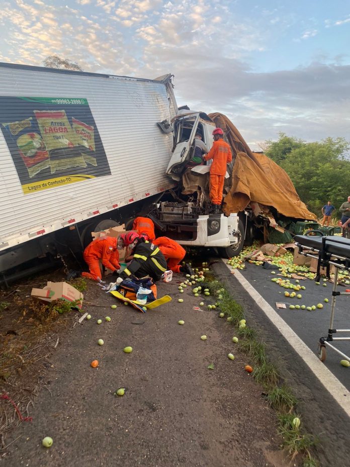 Um caminhão ficou com a cabine esmagada após atingir a traseira de uma carreta na BR-153 em Colinas do Tocantins, no norte do estado, na manhã desta sexta-feira (24). A batida deixou um motorista gravemente ferido e outro com escoriações. Ambos foram socorridos com vida e levados para o hospital.