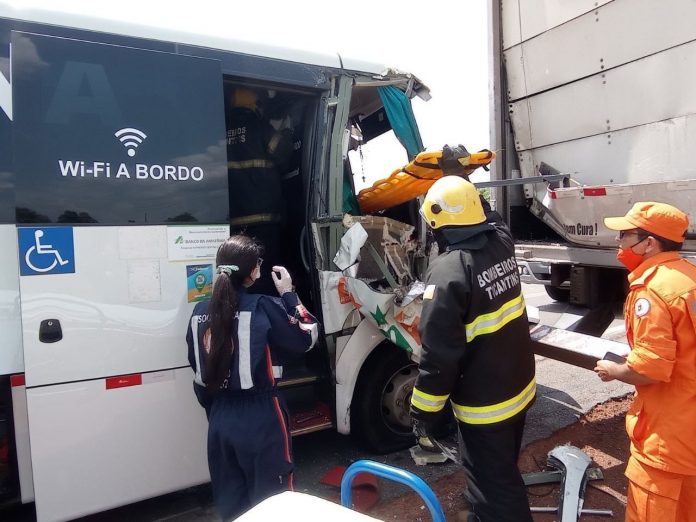 Um micro-ônibus bateu na traseira de um caminhão na tarde desta terça-feira (5) na BR-153. O acidente aconteceu próximo de Nova Olinda, no norte do Tocantins, por volta das 12h30. O motorista ficou preso às ferragens e precisou retirado em uma prancha pelo Corpo de Bombeiros.