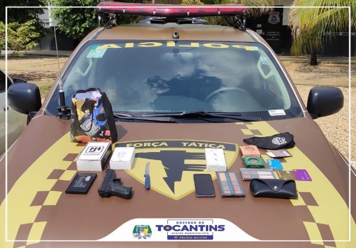 Ela acabou confessando o crime e levou a equipe até uma construção abandonada, onde os objetos furtados estavam escondidos dentro de uma mochila junto com uma faca e um simulacro de arma de fogo. Após a prisão a mulher foi levada para a central de flagrante da Polícia Civil em Palmas.