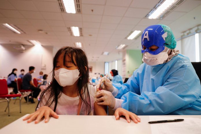 Imunização tem sido impulsionada por China e Índia, os 2 países mais populosos do planeta, que concentram 36% da população mundial e 46% de todos os imunizantes aplicados até agora. Profissional de saúde com máscara do Capitão América vacina menina contra a Covid-19 com a CoronaVac em Jacarta, na Indonésia, em 16 de janeiro de 2022