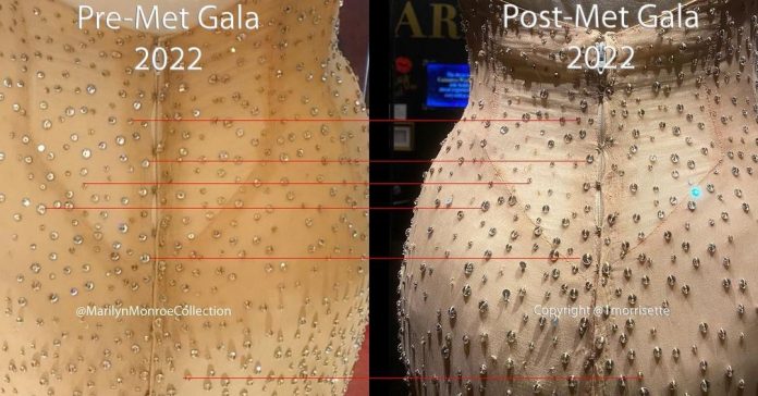 Vestido icônico de Marilyn Monroe usado por Kim Kardashian no Met Gala 2022 aparece danificado