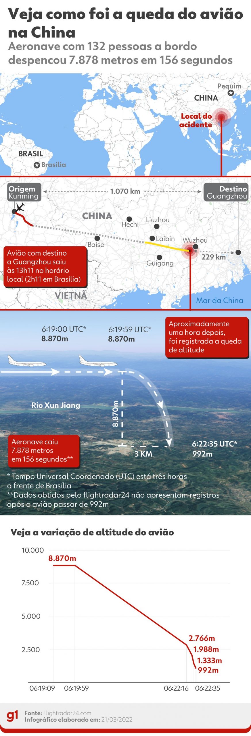 Veja como foi a queda do avião na China — Foto: Arte g1
