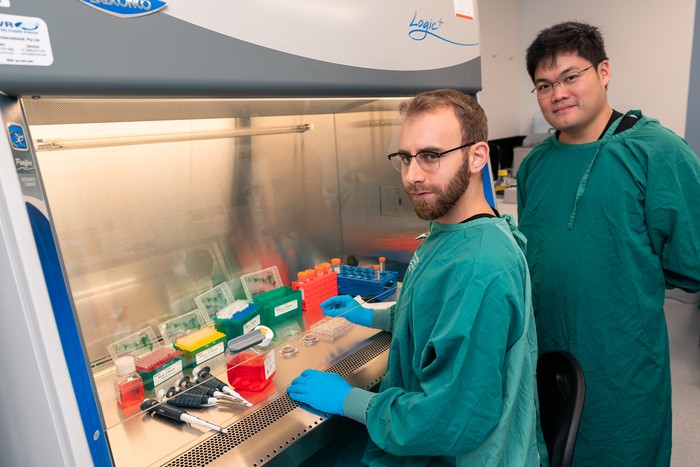 Eles foram produzidos pela primeira vez em 2013 e, desde então, têm sido empregados em pesquisas sobre desenvolvimento cerebral. A expectativa é que isso possa ser usado para testar tratamentos para doenças neurodegenerativas. O diretor científico da Cortical Labs, Brett Kagan (sentado), e o diretor executivo, Hon Weng (em pé), fazendo trabalho de laboratório