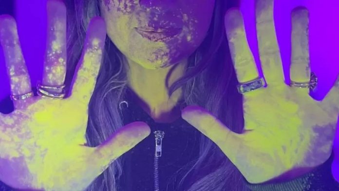 Quando seco, o líquido é invisível a olho nu, mas brilha em amarelo fluorescente sob lâmpadas ultravioleta e lanternas usadas pela polícia.