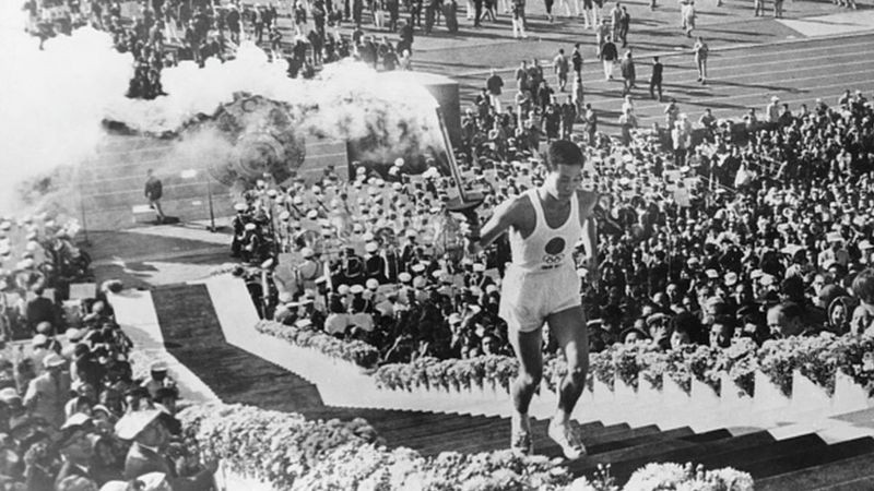 Há 57 anos, um sobrevivente da bomba atômica acendeu a pira na cerimônia de abertura dos Jogos que serviram de vitrine da reconstrução do país e entraram para a história como os primeiros a serem televisionados. Milhares de espectadores presentes no Estádio Nacional de Tóquio se emocionaram ao ver o atleta Yoshinori Sakai (1945-2014) carregar a tocha na cerimônia de abertura dos Jogos