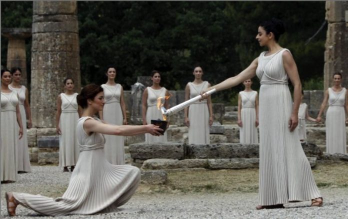 Os primeiros jogos aconteceram em 776 a.C. e há relatos de jogos tendo sido disputados a cada quatro anos até o ano de 393 d.C — mais de mil anos depois. Atrizes recriaram cenas das olimpíadas antigas em uma cerimônia em Londres 2012