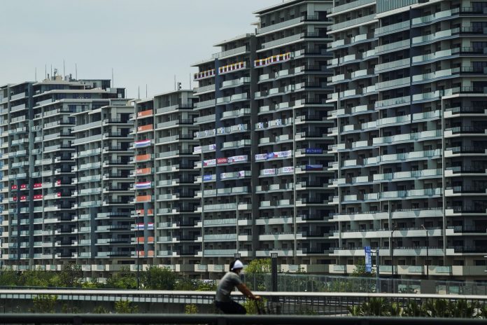 Agora são 5 casos confirmados de pessoas com o vírus na Vila Olímpica na véspera dos Jogos. Homem anda de bicicleta perto da vila dos atletas dos Jogos Olímpicos e Paraolímpicos de Tóquio em 15 de julho de 2021