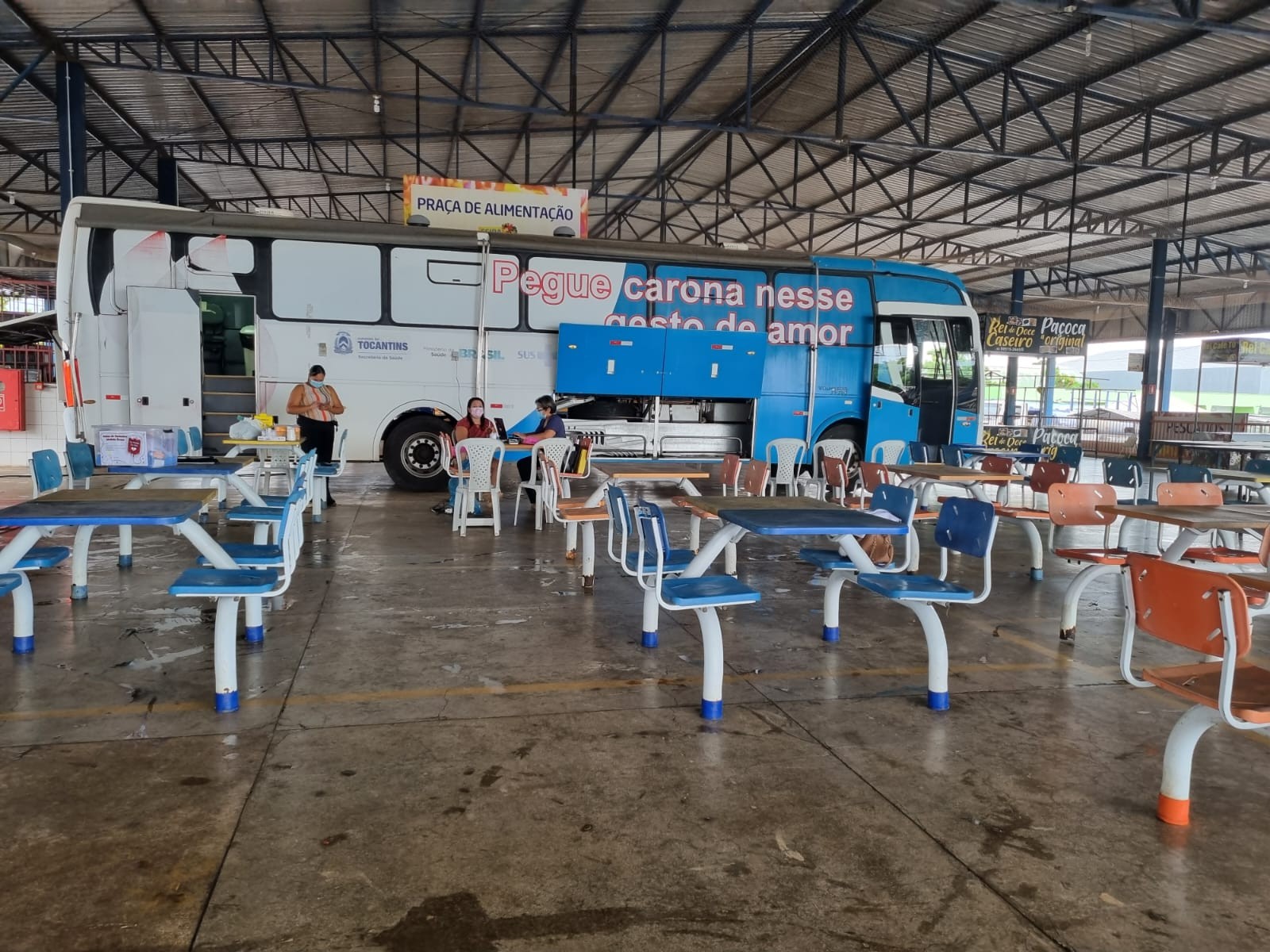 Ônibus estaciona na feira do Jardim Aureny I para coletar sangue de moradores de Palmas