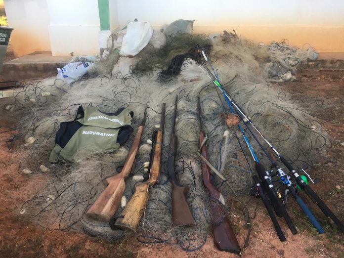 Durante os trabalhos foram recolhidos 8.300 metros de redes de diversas malhas, quatro espingardas, além dos animais. Os peixes presos às redes e que ainda estavam vivos foram devolvidos para a água.