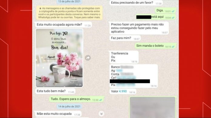 Segundo as investigações, as vítimas eram, principalmente, idosos, e foram induzidas a fazer depósitos via PIX para os criminosos (veja conversa acima). Os suspeitos usavam contas no aplicativo com fotos de parentes das vítimas e demonstravam conhecer detalhes da dinâmica familiar.