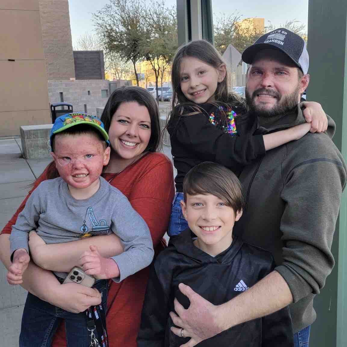 Após cirurgias e tratamentos em um hospital especializado em queimados no estado vizinho de Nevada, Kyle e Krew receberam alta e a família agora aguarda a recuperação da filha mais velha.