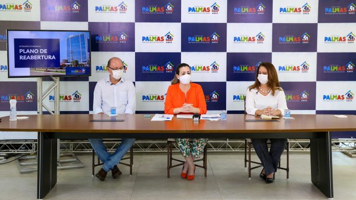 Durante live e na presença da imprensa, a prefeita Cinthia Ribeira anunciou na manhã desta sexta-feira, 29, o Plano Estratégico de Reabertura Econômica de forma gradual e com protocolos específicos de segurança para cada setor do comércio e serviços na cidade de Palmas. A gestora destacou que a flexibilização do comércio iniciou ainda em abril com a autorização de alguns segmentos, e que essas novas etapas vão exigir protocolos mais rígidos de segurança específico para cada setor.