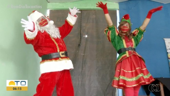 O ator Magum Santos se transforma no mês de dezembro, ganha barba branca, roupas vermelhas e agora um item de proteção: a máscara. Ele tem uma empresa que trabalha com apresentações não só do Papai Noel, mas da família toda do Bom Velhinho. Até duendes entram no pacote.