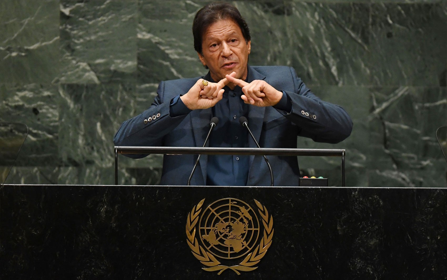 Nenhum chefe de governo completou seu mandato no Paquistão desde a independência do país em 1947. O primeiro-ministro do Paquistão, Imran Khan, durante discurso na 74ª Assembleia Geral da ONU, em Nova York.