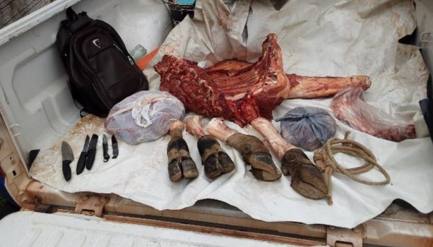 O primeiro suspeito foi encontrado em uma casa no Setor Santa Luzia com parte da carne e quatro patas dos animais, que já tinham sido mortos.. Na sequência, em outra casa, os policiais localizaram uma bolsa contendo mais nove quilos de carne, três facas e três canivetes.