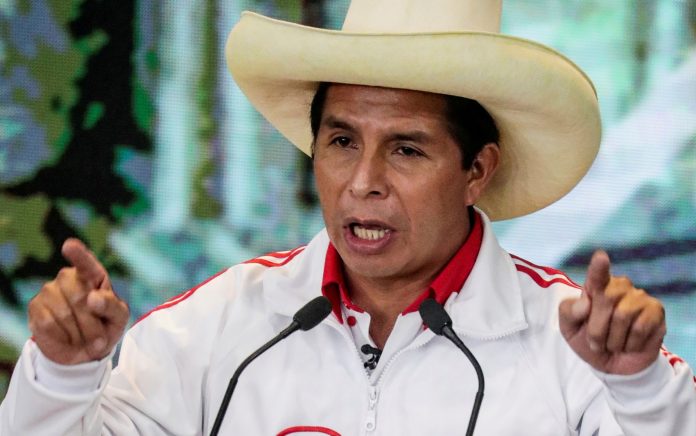 Pedro Castillo, presidente eleito do Peru, em foto de 15 de junho, enquanto ainda aguardava a decisão da Justiça