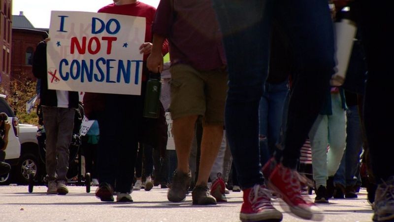 Em Concord, capital do Estado de New Hampshire, é impressionante ver alguns dos participantes de um grande protesto contra a obrigação de vacinação vestindo uniformes hospitalares.