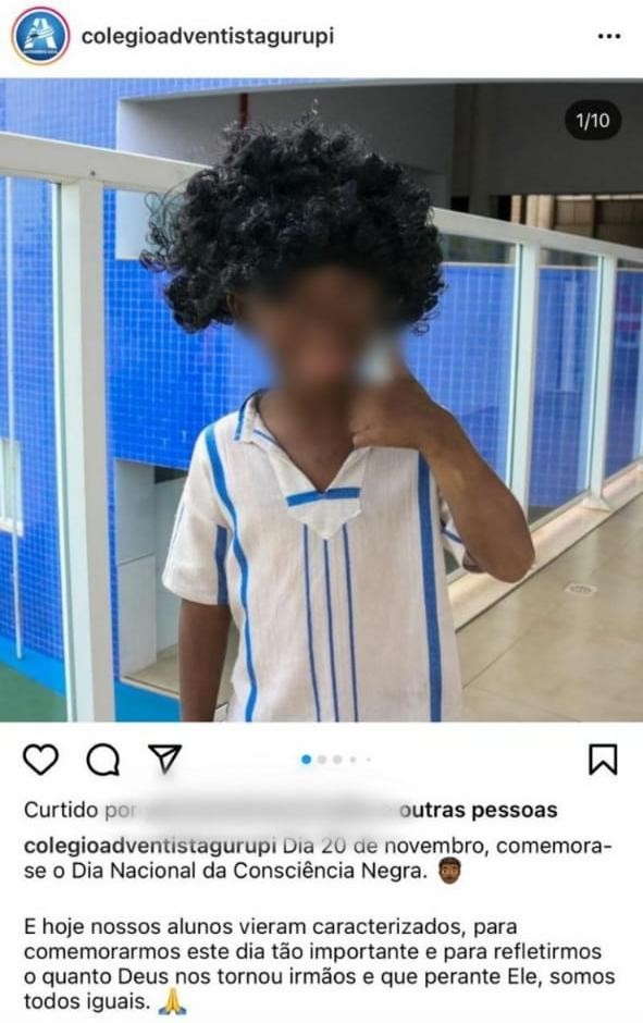 “Dia 20 de novembro comemora-se o Dia Nacional da Consciência Negra. E hoje nossos alunos vieram caracterizados para comemorarmos este dia tão importante e para refletirmos o quanto Deus nos tornou irmãos e que perante Ele, somos todos iguais. Me conta aqui nos comentários se você gostou da caracterização dos nossos alunos”, disse a escola no post.