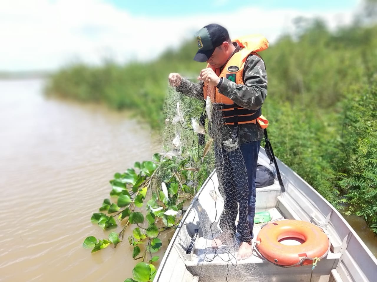 Até 28 de fevereiro de 2022 estará proibida a pesca em qualquer curso hídrico. Texto foi publicado pelo Instituto Natureza do Tocantins. Fiscal do Naturatins retirando rede de rio durante fiscalização
