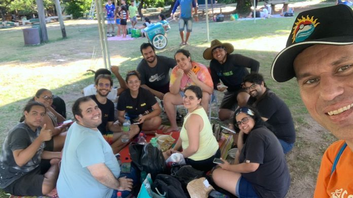 Elton Alves (de óculos à frente) e grupo de amigos reunido para jogar Pokémon GO