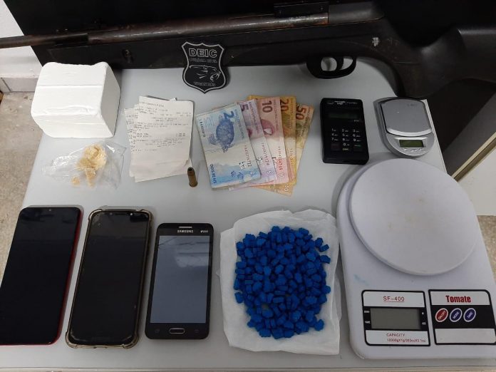 A Operação denominada “High Society” faz alusão ao grupo que revendia droga para classe média alta da cidade.  Foram apreendidos caminhonete, duas balanças de precisão, aparelhos celulares, uma arma de fogo e R$ 775,00 em espécie.