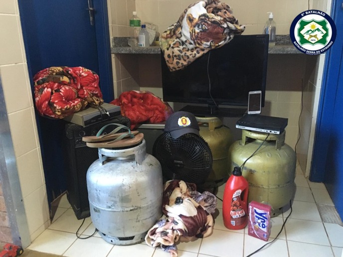 Já na segunda-feira, 6, após a guarnição ser informada de um furto em residência, foram localizados dois autores com dois pacotes de polpas de frutas oriundos do furto. Após a abordagem, os autores assumiram a prática de outros delitos na cidade, indicando as pessoas para quem os produtos furtados haviam sido vendidos. De posse das informações, a PM identificou os receptadores de diversos objetos os quais foram apreendidos: 2 televisores, 3 botijões de gás, 2 receptores de antena parabólica, 1 caixa de som, 1 ventilador, 1 aparelho celular, produtos de limpeza, roupas de cama, dentre outros objetos.