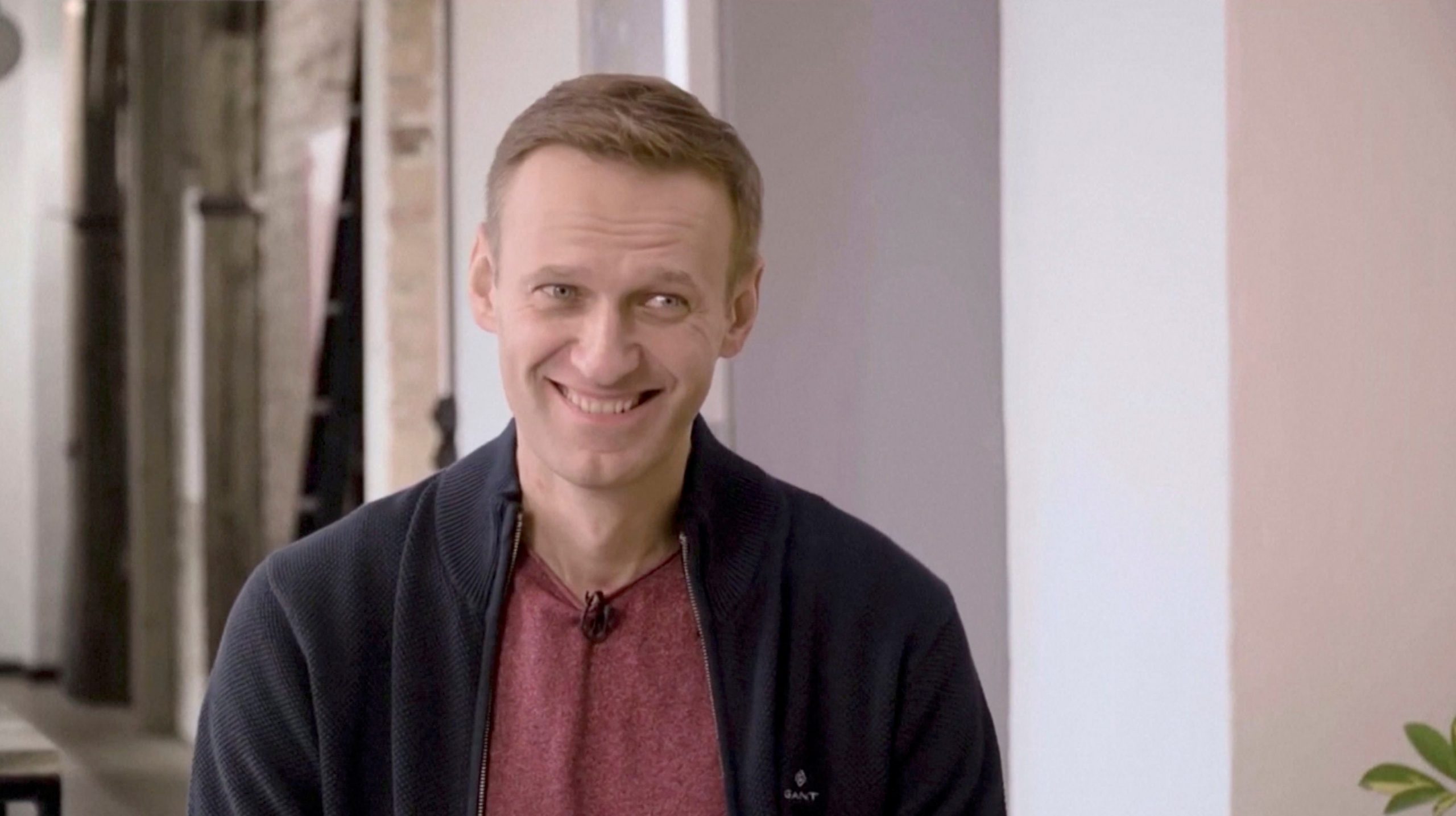 O político de oposição russo Alexei Navalny sorri durante uma entrevista com o youtuber russo Yury Dud em Berlim, na Alemanha, em frame retirado de um vídeo divulgado nesta terça-feira (6)