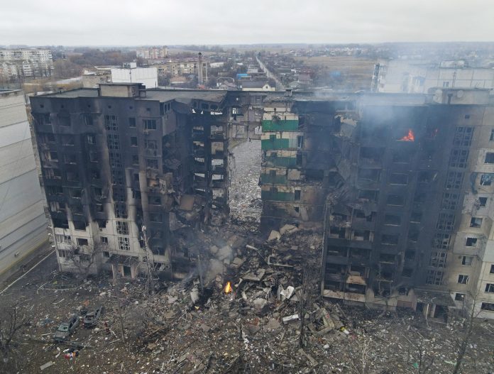 Prédio em Borodyanka, perto de Kiev, na Ucrânia, em 3 de março de 202