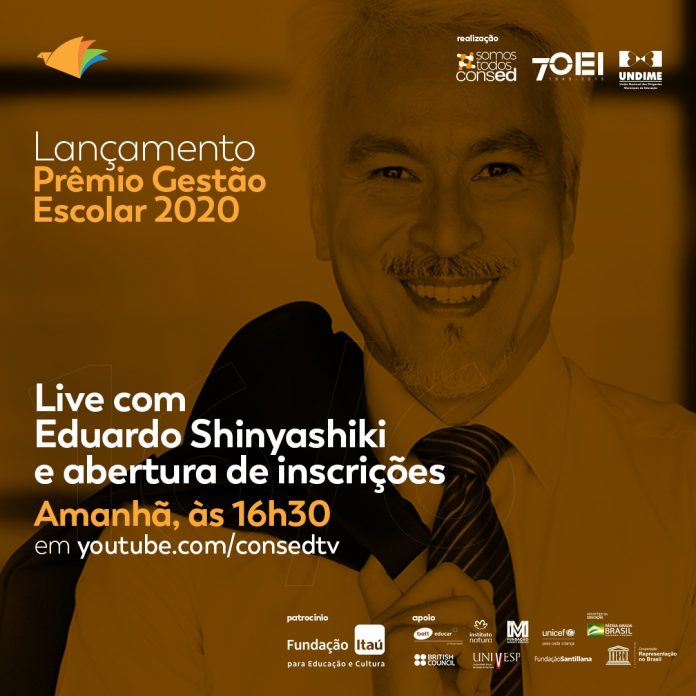 O Prêmio Gestão Escolar 2020 será lançado nesta terça-feira, 16, a partir das 16h30, a live contará com o escritor e especialista em desenvolvimento das competências de liderança organizacional, educacional e pessoal, Eduardo Shinyashiki. A transmissão ocorrerá pelo canal do Conselho Nacional de Secretários de Educação (Consed) no YouTube e no Facebook.