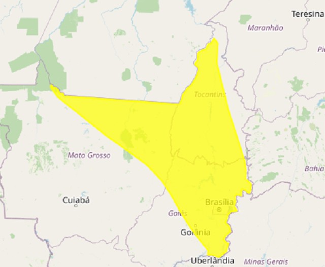 O alerta começou na manhã desta segunda-feira (19) e segue até à tarde de terça-feira (20), em quase todo o Tocantins. Apenas a região do bico do papagaio e a parte leste do estado ficam fora da área de risco, mas isso não significa que possa chover forte nessas regiões.