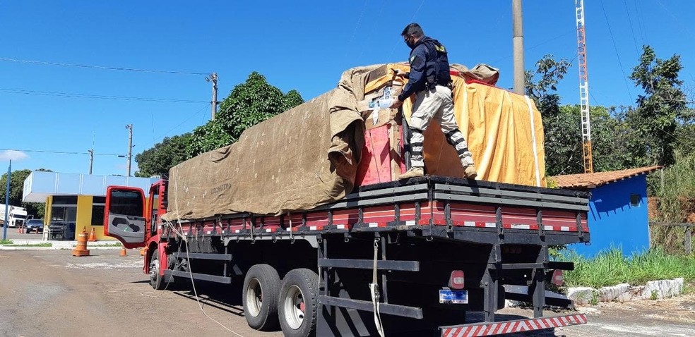 Os policiais desconfiaram do nervosismo do caminhoneiro, que ficou insatisfeito quando os policiais pediram para retirar a lona e fiscalizar a carga.