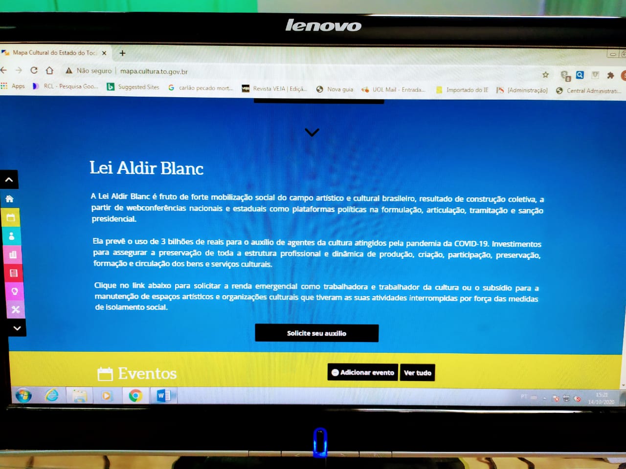 O Governo do Tocantins, por meio da Agência do Desenvolvimento do Turismo, Cultura e Economia Criativa (Adetuc), abriu o período de inscrição dos profissionais da cultura para a renda emergencial da Lei Federal Aldir Blanc. O valor de R$ 600,00 (R$ 1.200,00 para mulheres chefe de família) será concedido em três parcelas retroativas, podendo ser prorrogado conforme disponibilidade orçamentária do Governo Federal.