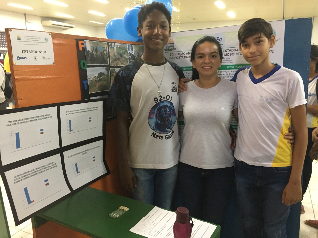 Professora Gabriela Pereira (no centro) acompanhando os estudantes em apresentação dos projetos na Universidade Federal do Tocantins