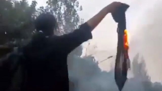 Em um deles, uma garota vestida de preto de pé em uma lixeira na rua balança um véu em chamas. Uma multidão ao redor dela grita “morte ao ditador” — uma referência ao líder supremo, aiatolá Ali Khamenei, que tem a palavra final em todos os assuntos de Estado. Outro vídeo mostra a mesma cena de um ângulo diferente.