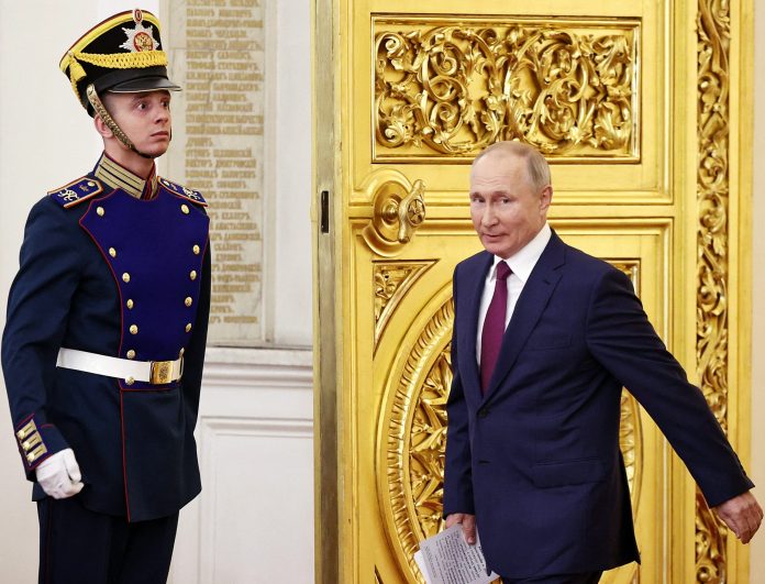 Informação de qual imunizante o presidente russo recebeu era mantida em segredo pelo Kremlin. Revelação é feita no dia em que o país registra recorde de mortes por Covid pelo 2º dia seguido. O presidente da Rússia, Vladimir Putin, entra em salão no Kremlin, em Moscou, para reunião em 30 de junho de 2021 com os atletas olímpicos que vão disputar as Olimpíadas de Tóquio