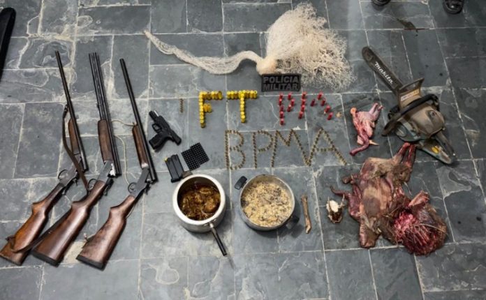 Quatro homens são presos e multados em R$ 11 mil após serem encontrados com armas e carne de animais silvestres
