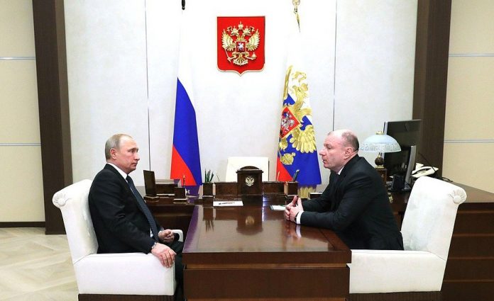 Vladimir Potanin (à direita) e o presidente da Rússia, Vladimir Putin, durante reunião em dezembro de 2018