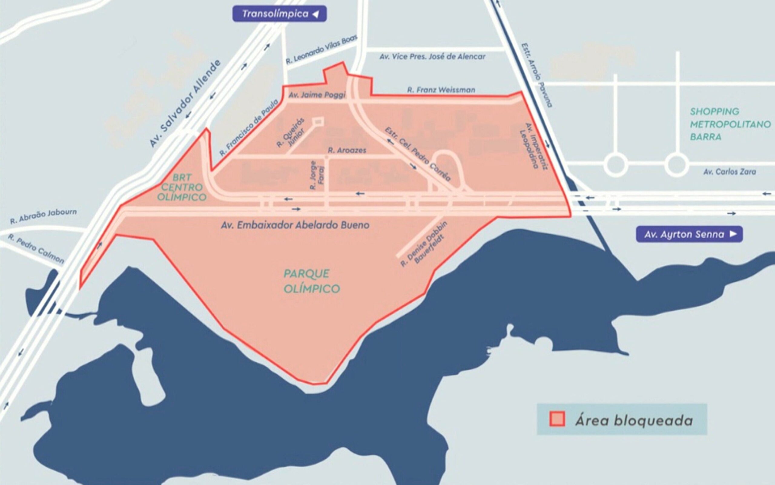 Da Barra ou do Recreio para Transolímpica: a Av. Salvador Allende não estará bloqueada, mas estão previstos congestionamentos. Quem estiver na Av. Abelardo Bueno deve pegar a Estr. Arroio Pavuna, Estr. dos Bandeirantes e Estr. Calmete.