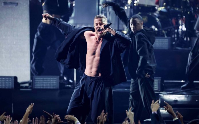 Dan Reynolds, do Imagine Dragons, em apresentação da banda no AMA 2022