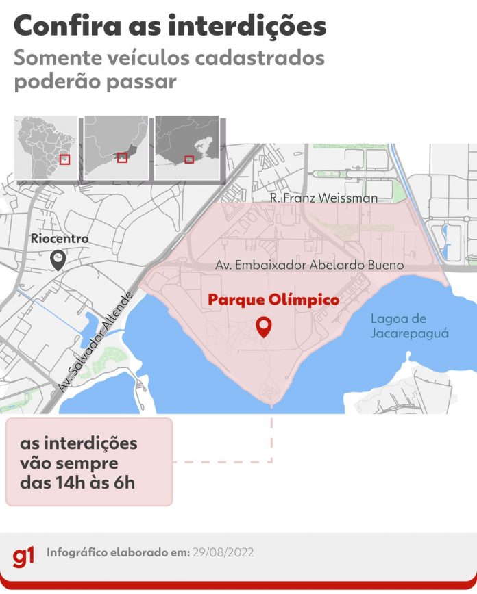 Nos dias de show, o entorno do Parque Olímpico será bloqueado das 14h às 6h. A Avenida Embaixador Abelardo Bueno, por exemplo, fechará entre as avenidas Salvador Allende e Arroio Pavuna.