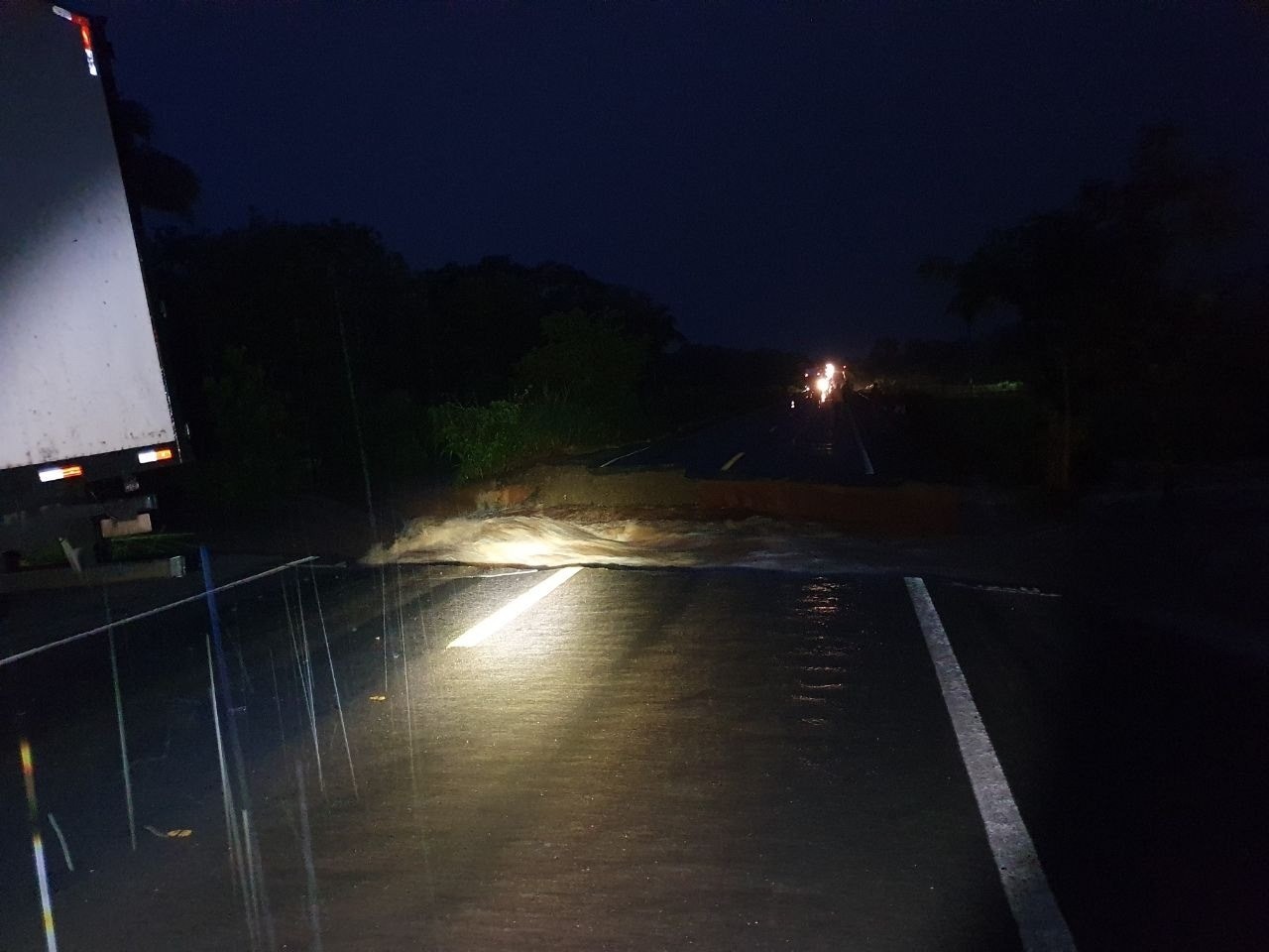 Rompimento de rodovia mata um motorista e outro é resgatado após ser arrastado pela correnteza