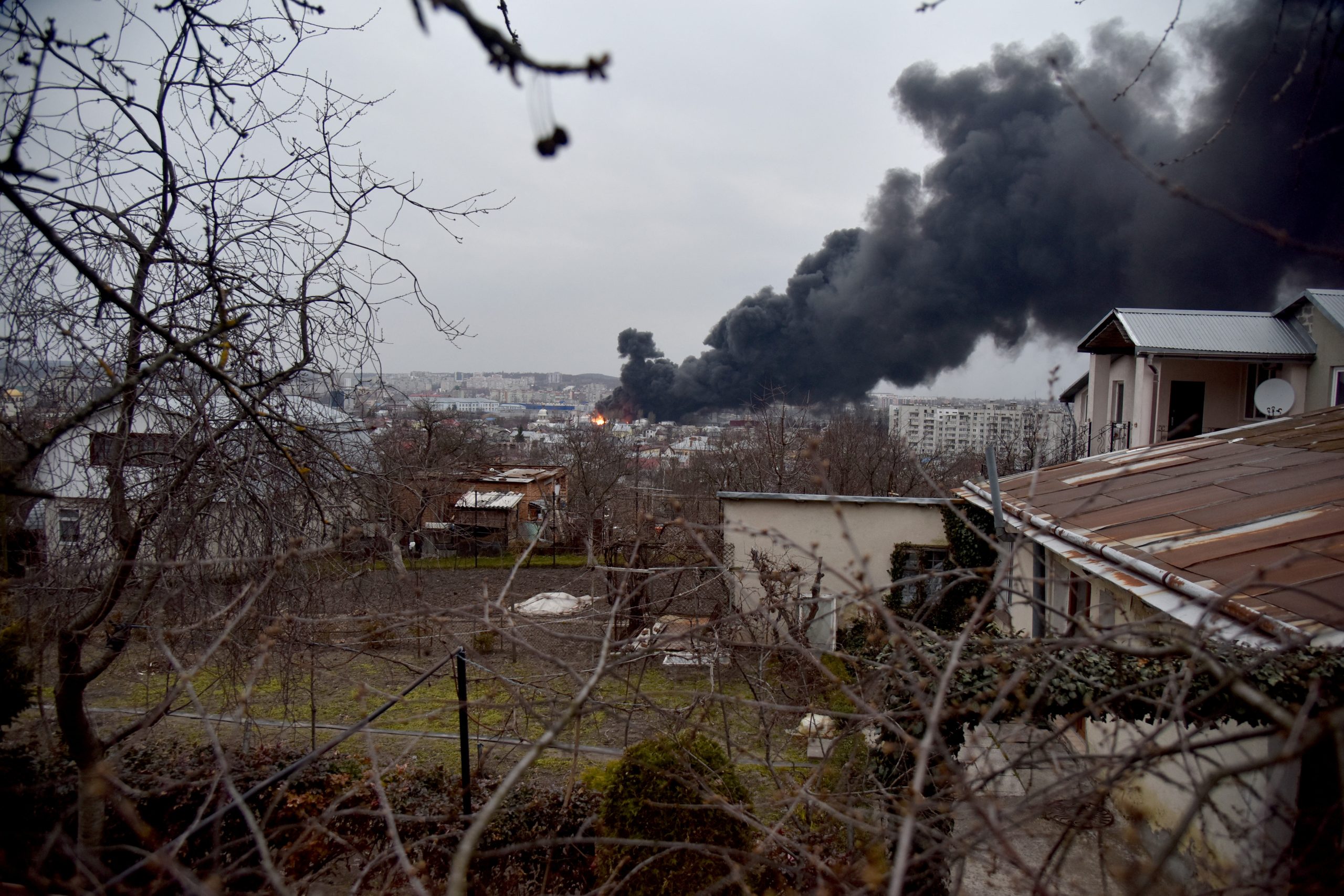 Forças russas atingiram um depósito de combustível utilizado pelas forças ucranianas perto da cidade e uma fábrica usada para o conserto de sistemas antiaéreos, estações de radar e acessórios para blindados. Cinco pessoas ficaram feridas. Bombeiros combatem incêndio em depósito de combustível de Lviv