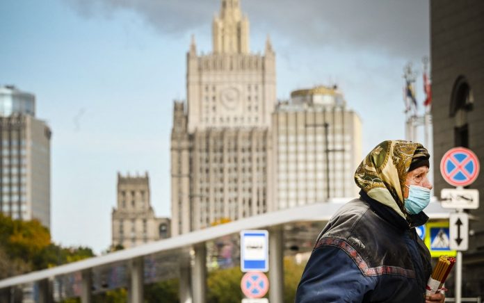 Quinto país mais atingido pela pandemia no mundo, país está observando uma alta nas infecções desde meados de setembro. Foram registrados 852 mortes e mais 21.559 casos nas últimas 24 horas, segundo autoridades. Mulher usando máscara caminha pelo centro de Moscou, na Rússia, na terça-feira (28)