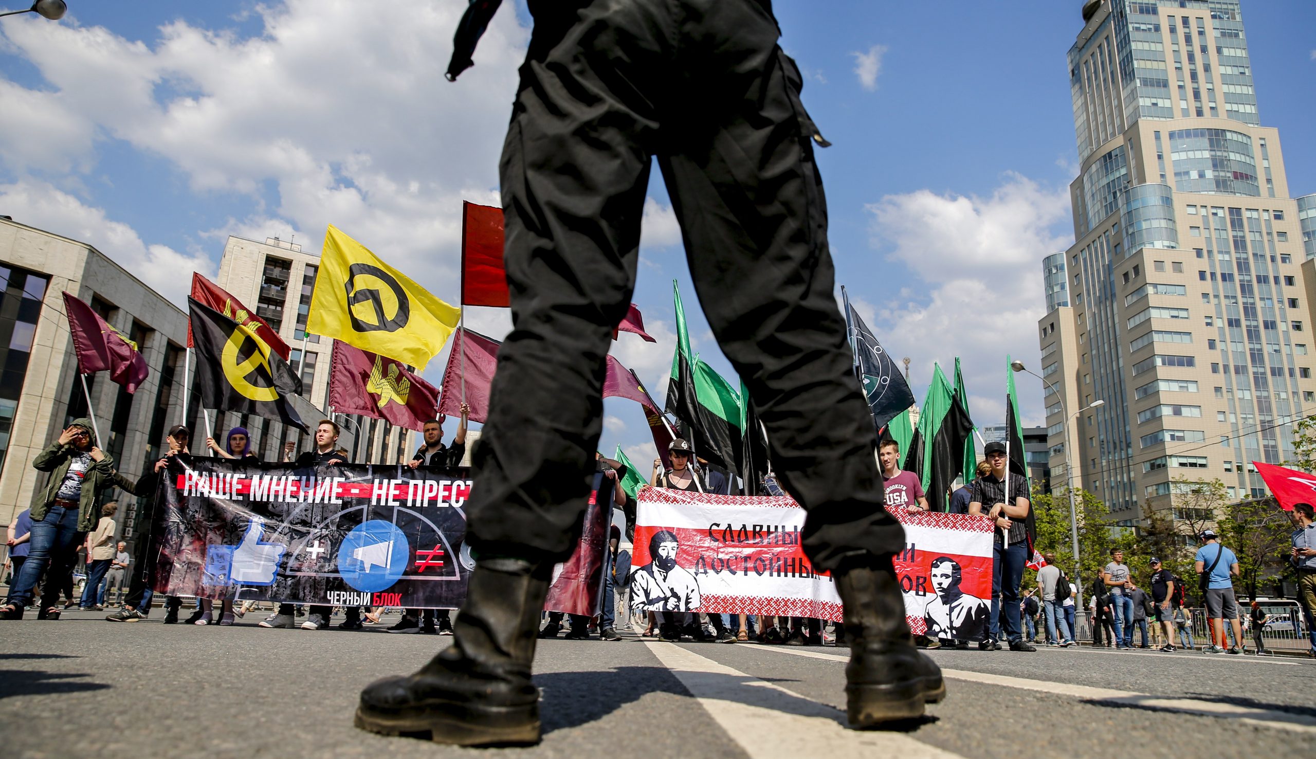 Imagem de 2018 mostra manifestantes protestando por internet livre em Moscou, Rússia