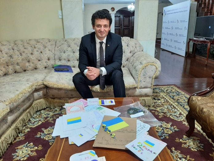 Encarregado de negócios de 44 anos concedeu entrevista ao g1. Em meio à invasão da Ucrânia pela Rússia, ele substituiu na prática embaixador que deixou o país em dezembro. Encarregado de negócios da embaixada da Ucrânia no Brasil lê cartas de apoio de crianças